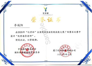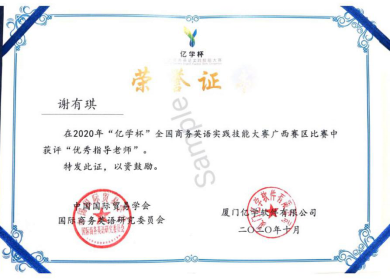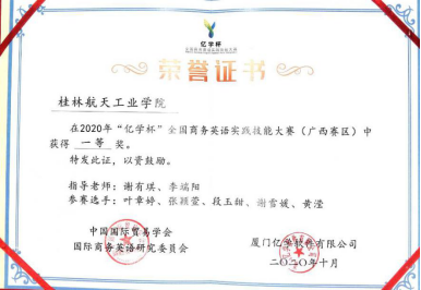 永利集团304am官方入口商务英语专业五名学子谢雪媛、叶章婷、黄滢、段玉甜、张颖萱在2020年“亿学杯”全国商务英语实践技能大赛中荣获区赛一等奖。