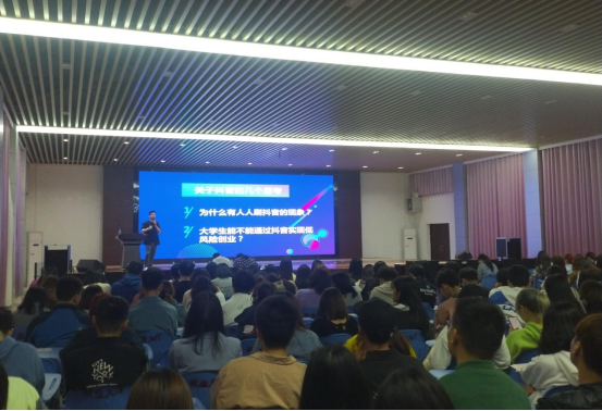 为了落实我院跨境电商产业学院项目的实施,进一步推进产教融合校企合作协同育人项目,提高商务英语专业学生在电商领域的就业竞争力,4月20日晚上,我院邀请校企合作单位桂林市皓东电子商务有限公司在学校招聘大厅举办“抖音直播技能与大学生电商创业基础”的讲座。