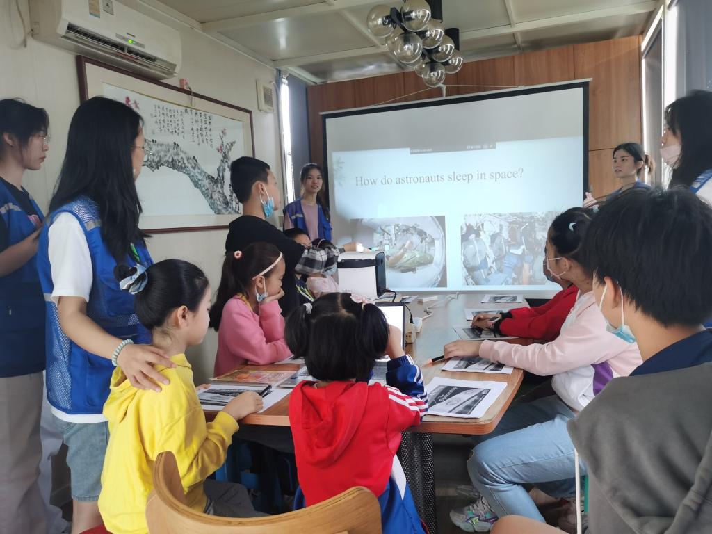 团队结合我校航天文化特色,将航天知识融入英语绘本阅读讲解,并运用“张口说+动手做”的方式,带领小学生们一起进行了一场生动有趣的航天之旅。