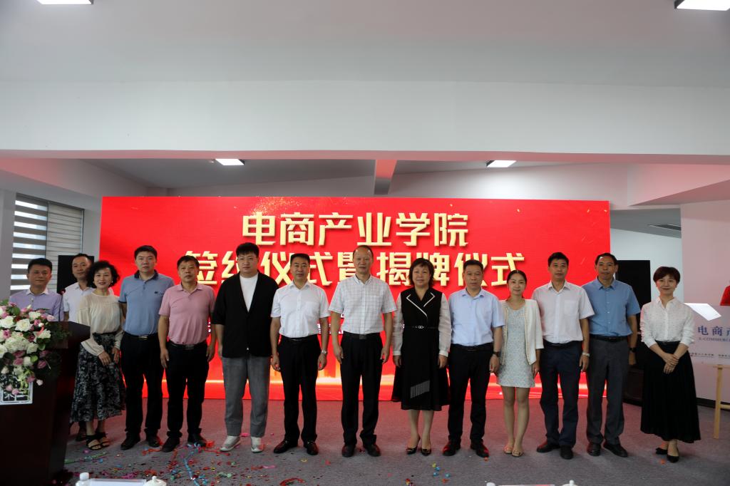最后,孙山林副校长、黄岳飞调研员、谢川总经理代表三方签订联合共建电商产业学院战略合作协议;李幼平书记、郭红星区长、刘琴主席、陈宏涛董事长为电商产业学院揭牌。