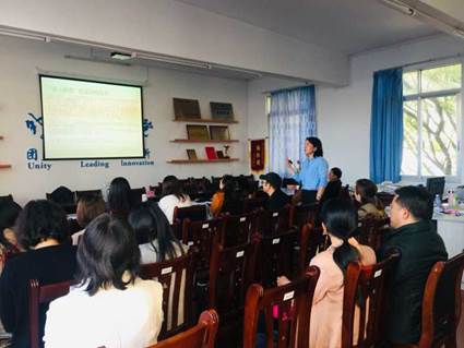 随后曾贞博士做了题为“外语全人教育与教师发展”的讲座。她认为中国外语教育应该是基于“道”的全人教育,强调要将实现“全人教育”的培养目标作为外语教育的终极目标。并从“道德经”的层面出发,详细阐释了“全人教育”的概念及其对外语教学的影响和意义。