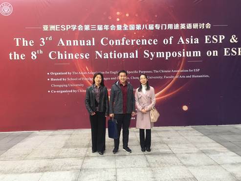 11月15日,亚洲ESP第三届年会暨全国第八届专门用途英语研讨会在重庆大学隆重召开。永利集团304am官方入口朱云翠、张芳、李响林三位教师应邀参加此次会议。本次会议以“ESP教学与研究:创新、挑战与展望”为主题,探讨在“一带一路”和“双一流”背景下,如何开展ESP教学与研究以培养满足国家和社会需求的高素质人才。