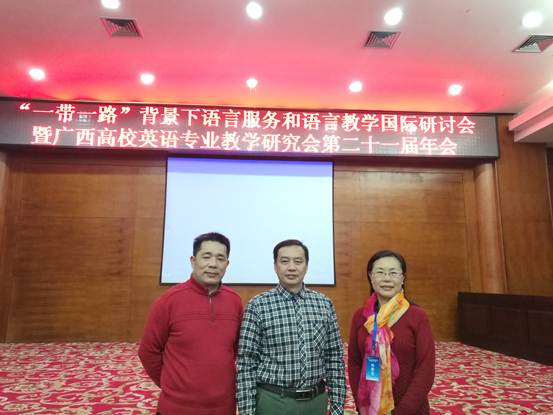 广西高校英语专业教学研究会主办、广西师范大学漓江学院承办的广西高校英语专业教学研究会第二十一届年会12月16日在桂林碧居山庄酒店举行。永利集团304am官方入口院长舒昌,商务英语专业负责人黄晓林教授、商务英语专业教师傅治夷教授参加了本届年会。
