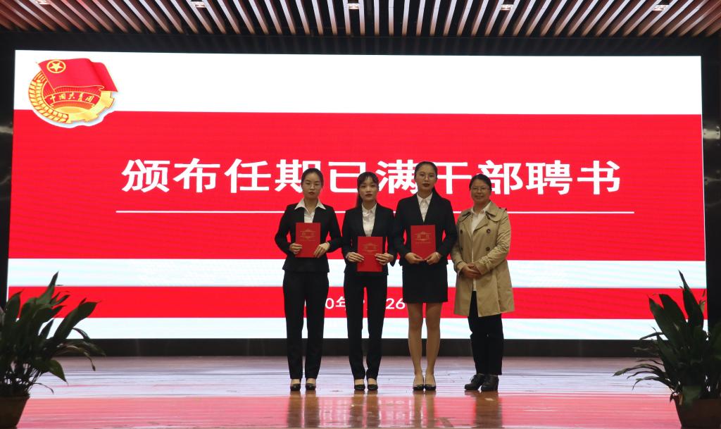 大会由院学生会副主席钟丽媚主持。响亮的国歌、团歌拉开了大会的序幕,随后院团委副书记、学生会主席分别对2019―2020学年团委工作、学生会工作作了报告,总结了我院团委一年来工作取得的成绩,分析了不足之处,为未来工作开展指明了方向,提出了希望。报告后,老师们为上一届全体干部颁发了聘书,离任和新任干部分别作了发言,最后全体师生进行了合影。